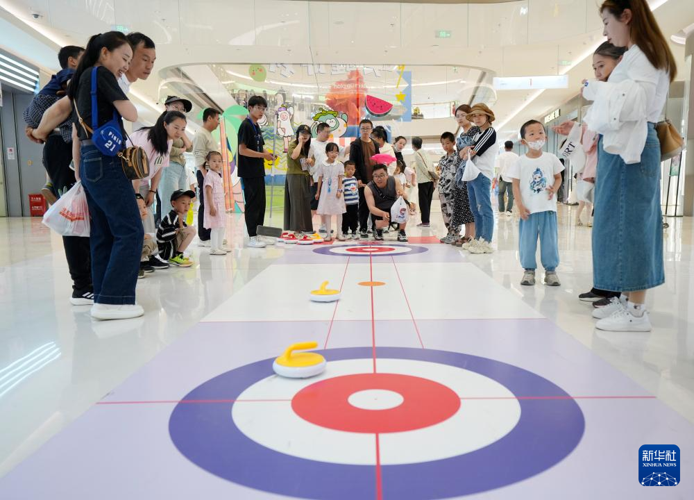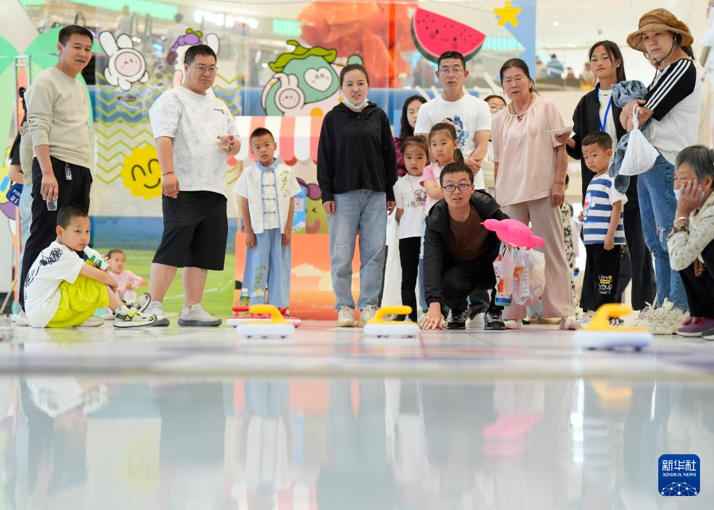 5月31日,市民在活動現(xiàn)場參加大眾旱地冰壺挑戰(zhàn)賽。