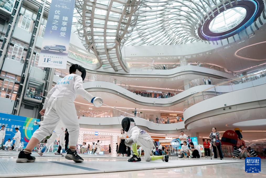 端午節(jié)當日,2025年寧夏“體育賽事進景區(qū)、進街區(qū)、進商圈”系列活動暨全國大學(xué)生三人籃球邀請賽在銀川市金鳳區(qū)悠閱城開幕。同時這里還舉行了青少年擊劍邀請賽、大眾旱地冰壺挑戰(zhàn)賽、大眾射箭挑戰(zhàn)賽以及國民體質(zhì)監(jiān)測等,吸引眾多市民前來“參賽+觀賽+打卡+消費”。