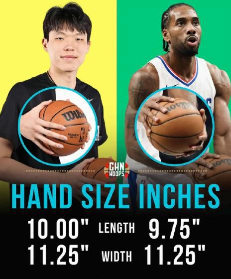 裸足2米16的身高,同屆第一的手長(比倫納德還長)和第二的手寬,證明楊瀚森的巨人身材沒有水分。