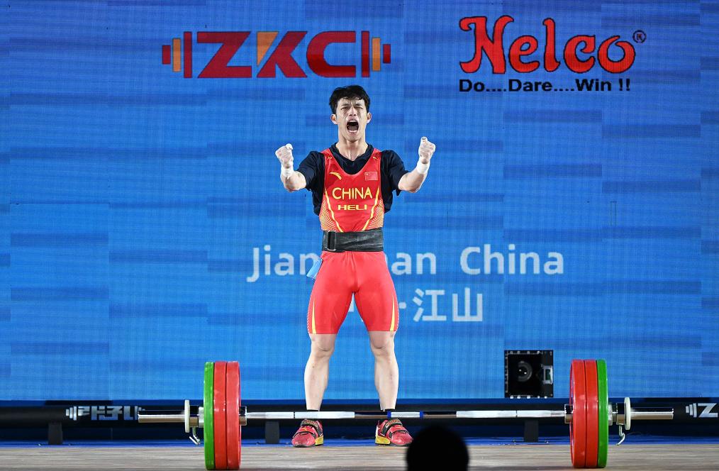 男子55公斤級(jí)比賽,中國(guó)選手王威東抓舉舉起119公斤,排名第二,挺舉中他第一次試舉142公斤成功,隨后又成功舉起146公斤,總成績(jī)達(dá)265公斤,收獲抓舉銀牌、挺舉和總成績(jī)金牌。
