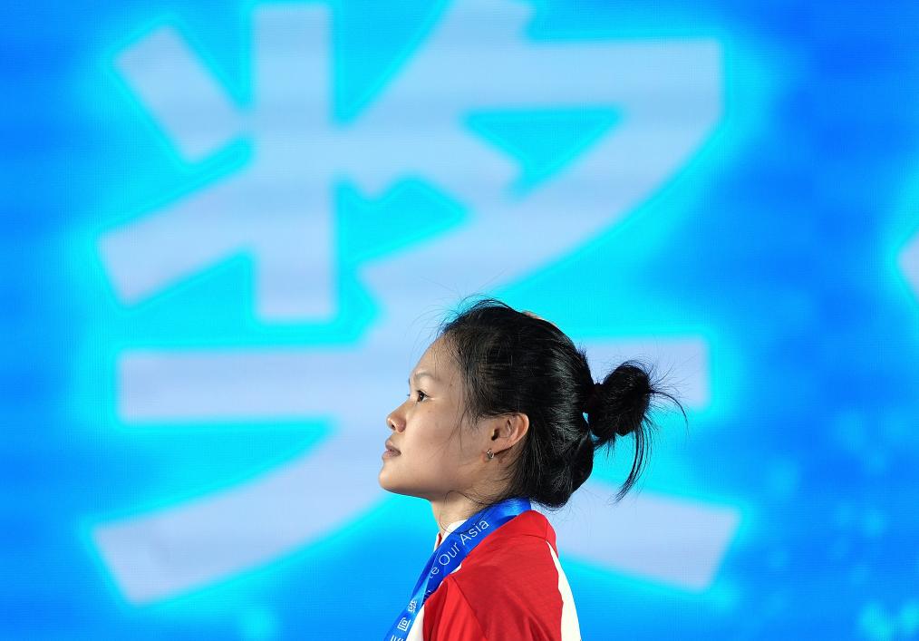 5月9日,中國(guó)選手趙金紅在頒獎(jiǎng)儀式上。體育日?qǐng)?bào)記者 侯昭康 攝