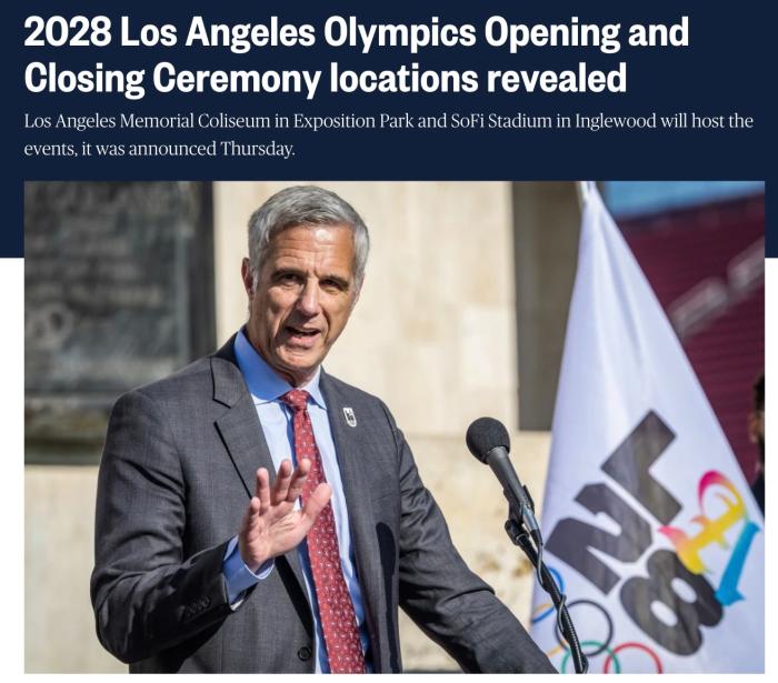 洛杉磯奧組委確認(rèn)2028年奧運(yùn)會和殘奧會開閉幕式場地