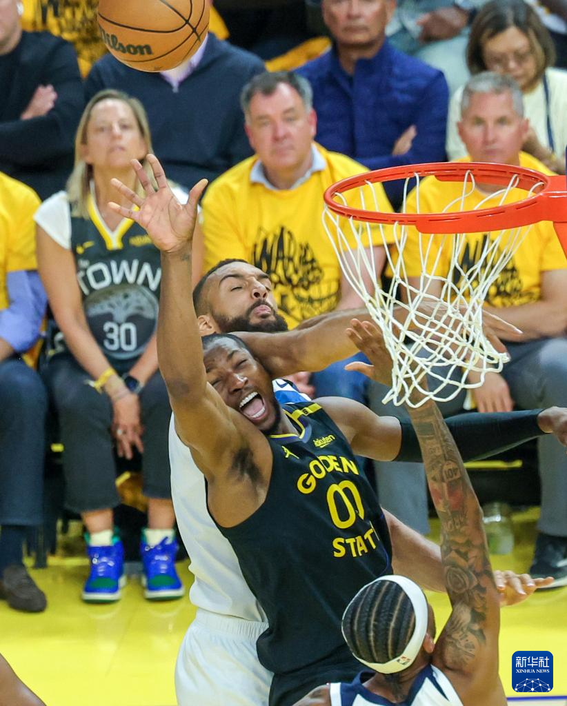 5月12日,勇士隊(duì)球員庫明加(中)在比賽中進(jìn)攻。