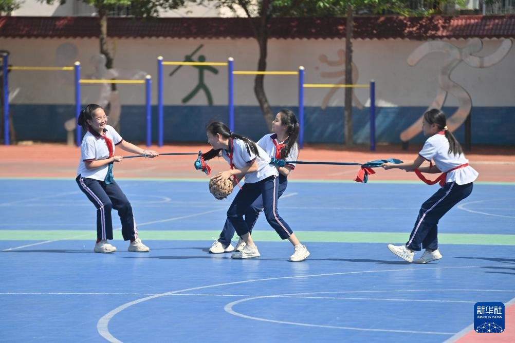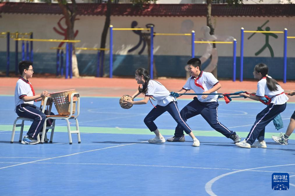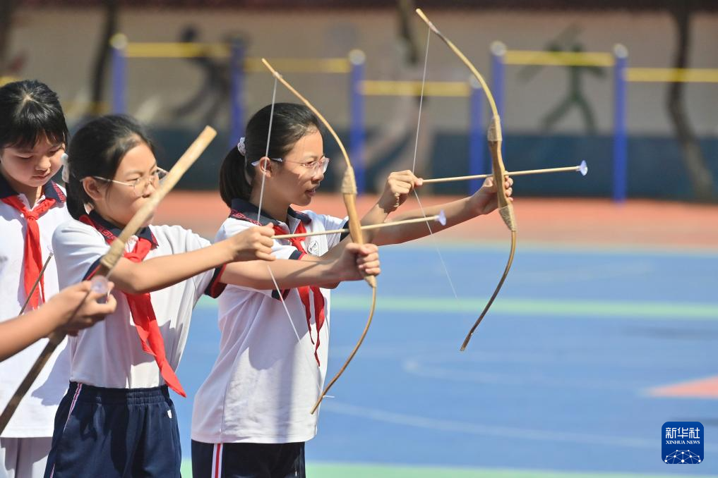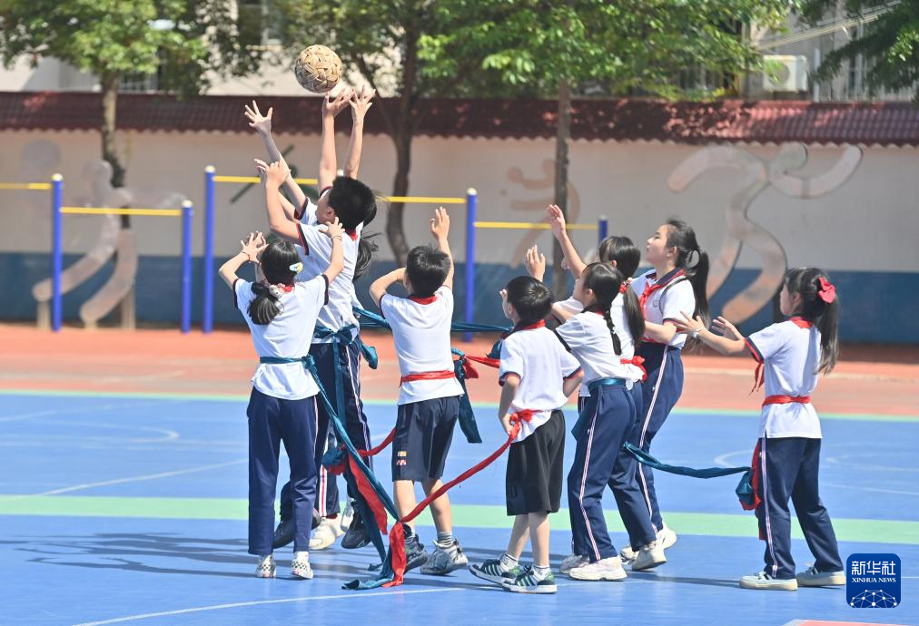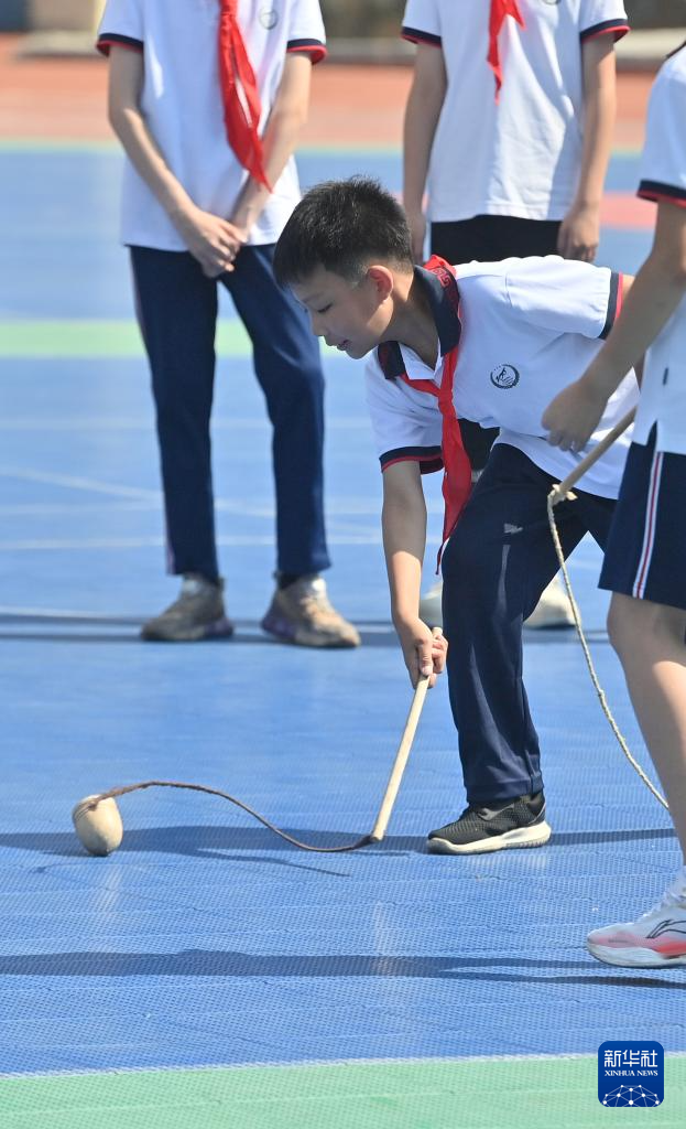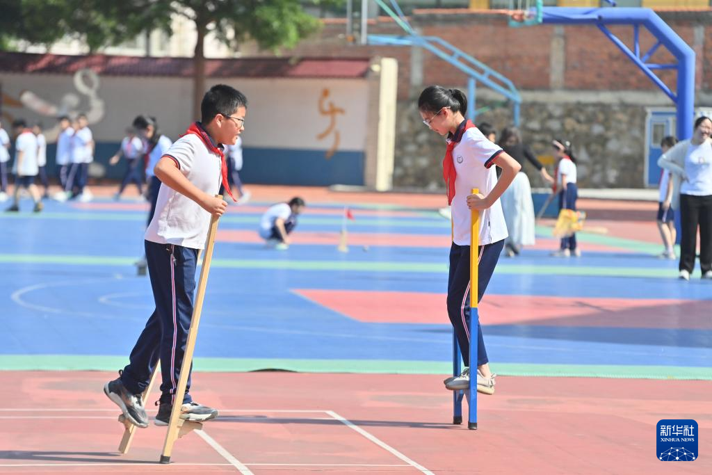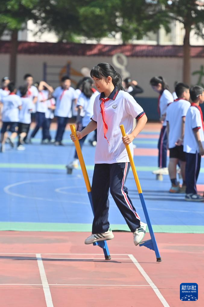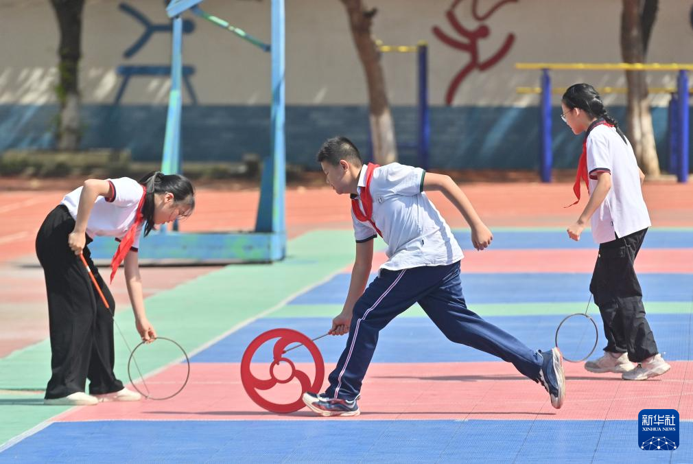 初夏時節(jié),廣西梧州新興小學開展豐富多彩的陽光體育大課間活動,讓學生在竹球、踩高蹺、射箭、陀螺、滾鐵環(huán)等傳統(tǒng)體育項目中,享受運動的快樂。