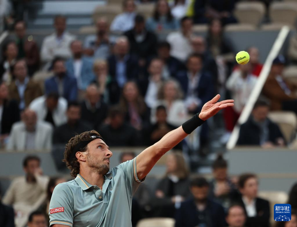 5月26日,蘭德克內(nèi)什在比賽中發(fā)球。
