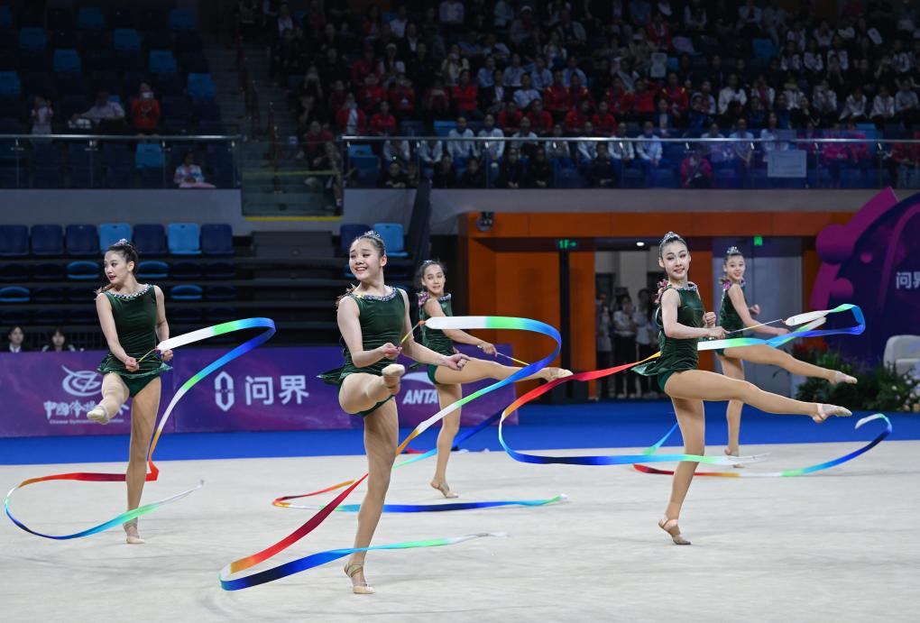 6月2日,北京體育大學(xué)隊(duì)在成年集體5帶資格賽中。體育日?qǐng)?bào)記者 陳誠 攝