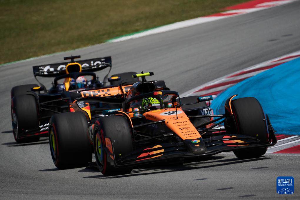 6月1日,邁凱倫車隊英國車手諾里斯(右)在比賽中。最終,他獲得亞軍。
