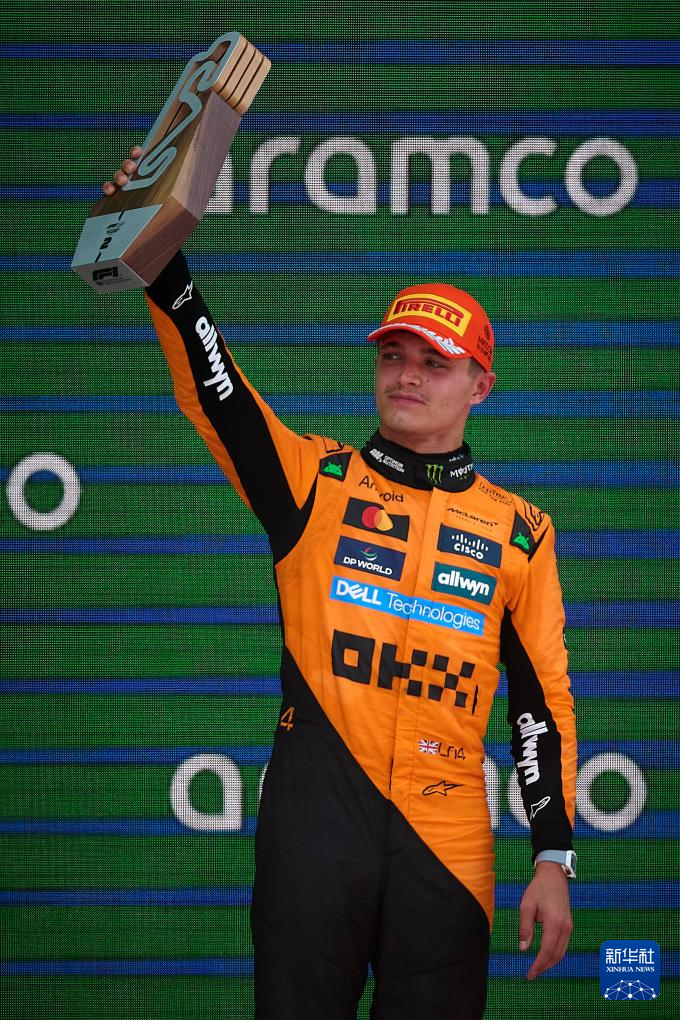 6月1日,亞軍邁凱倫車隊英國車手諾里斯在頒獎儀式上。