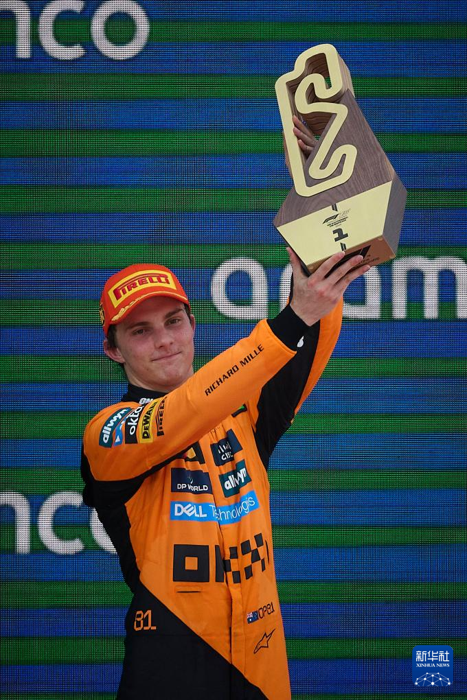 6月1日,冠軍邁凱倫車隊澳大利亞車手皮亞斯特里在頒獎儀式上。