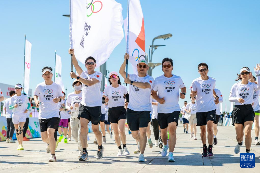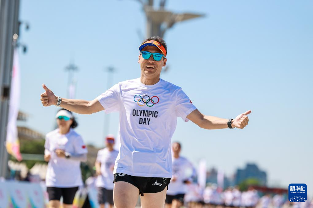 6月21日,在北京奧林匹克中心,運(yùn)動(dòng)愛(ài)好者在奧林匹克日“健康跑”活動(dòng)中。