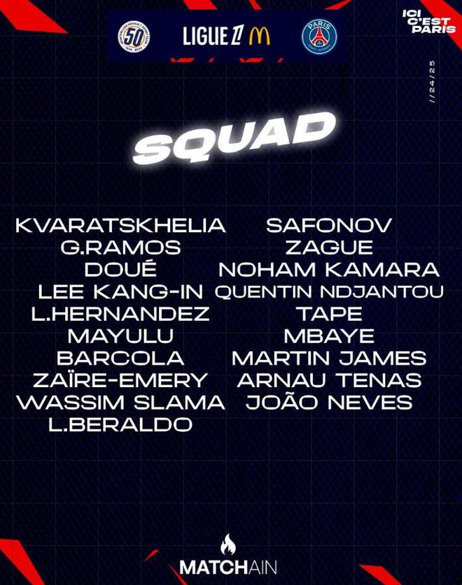 前鋒:克瓦拉茨赫利亞、貢薩洛-拉莫斯、杜埃、巴爾科拉、姆巴耶、康坦-恩賈恩圖
