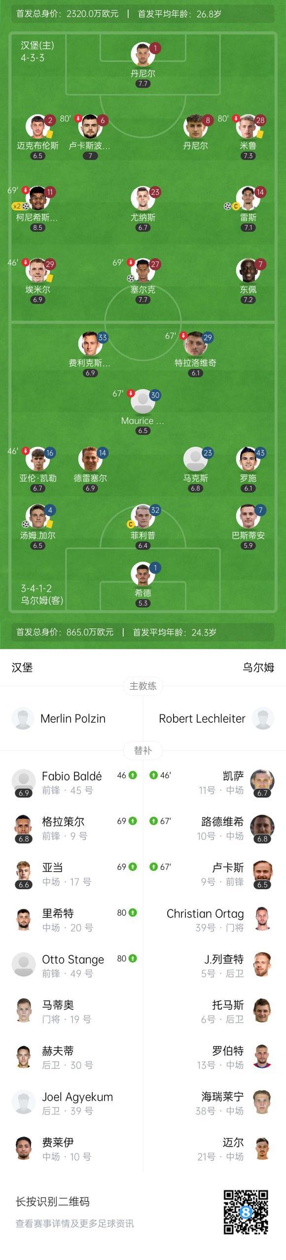 第47分鐘,漢堡擴大比分!東佩左路挑傳到禁區(qū)后點塞爾克高高躍起頭球破門,漢堡3-1烏爾姆。↓