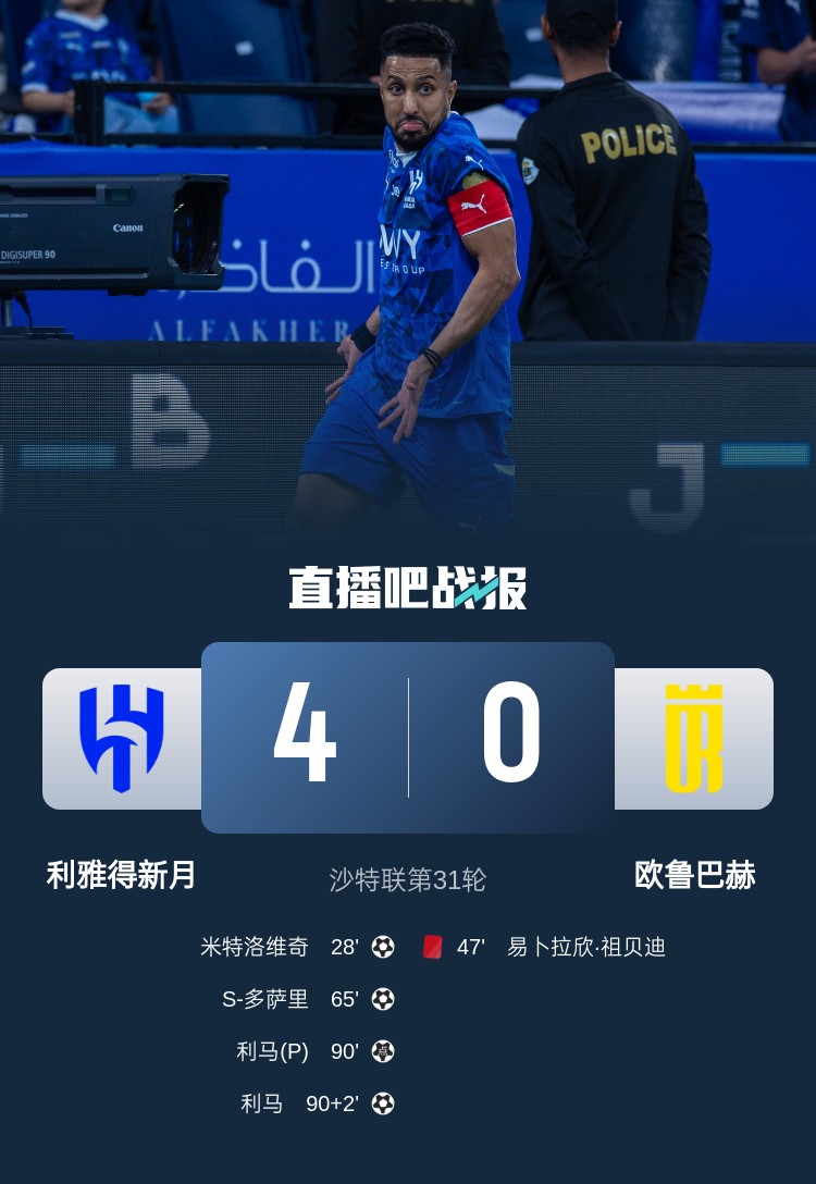 剩3輪距榜首6分!利雅得新月4-0十人歐魯巴赫 多薩里傳射利馬雙響