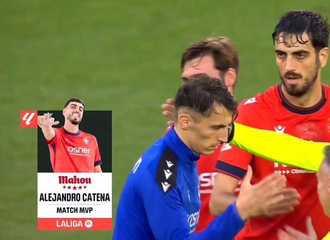 官方消息,卡泰納當選奧薩蘇納對陣馬德里競技一役全場最佳。