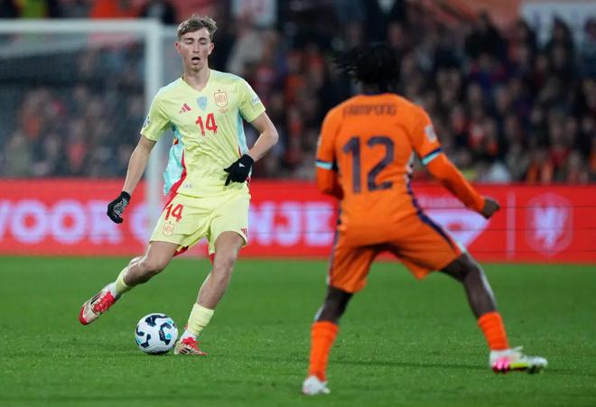 本賽季伯恩茅斯在伊勞拉的帶領(lǐng)下一度排名歐冠區(qū)邊緣,作為櫻桃軍團防線主力的黑森仰仗著英超的巨大曝光度,得到了全歐豪門的關(guān)注。今年3月,曾為荷蘭各級青年隊效力的黑森選擇為西班牙國家隊踢球,主帥德拉富恩特對他大加贊賞:“他具備現(xiàn)代中后衛(wèi)的所有素質(zhì),看起來就像是在足壇頂級賽事中效力過多年,很適合我們的團隊。”3月歐國聯(lián)1/4決賽次回合對陣荷蘭的比賽,黑森為西班牙隊打滿120分鐘,并在加時賽中送出準(zhǔn)確長傳,助攻亞馬爾破門。