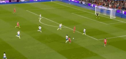 第45+1分鐘,神來之筆!索博斯洛伊突施冷箭打進死角,布萊頓1-2利物浦