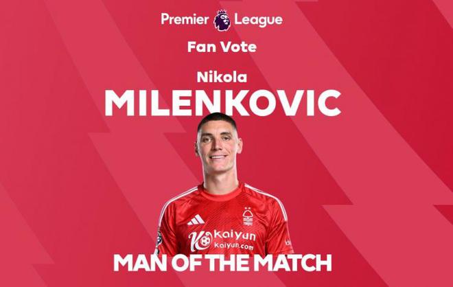 本場比賽諾丁漢森林球員米倫科維奇發(fā)揮出色,貢獻1粒進球和2次搶斷,賽后他也當選英超官方球迷票選全場最佳球員。