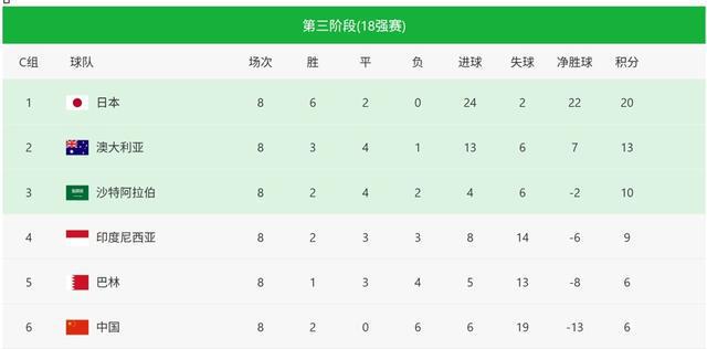 國足客場挑戰(zhàn)印尼之前,C組的積分榜形勢。