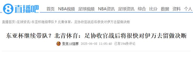 不過,據(jù)《體壇周報》記者馬德興的報道,伊萬科維奇暫時不會下課,因?yàn)樽銋f(xié)沒有決定權(quán),甚至有可能繼續(xù)帶隊(duì)征戰(zhàn)下個月開打的的東亞杯。