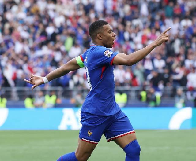 姆巴佩抱胸慶祝:法國90場50球,隊史第3人!皇馬隊友助攻