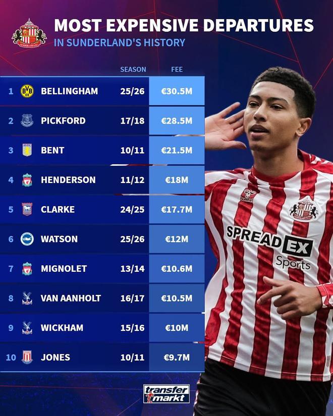 北京時間6月10日德甲日報宣報,據(jù)德轉(zhuǎn)統(tǒng)計,喬布-貝林厄姆以3050萬歐元的身價從桑德蘭加盟多特蒙德,刷新了桑德蘭歷史最高轉(zhuǎn)出紀錄。