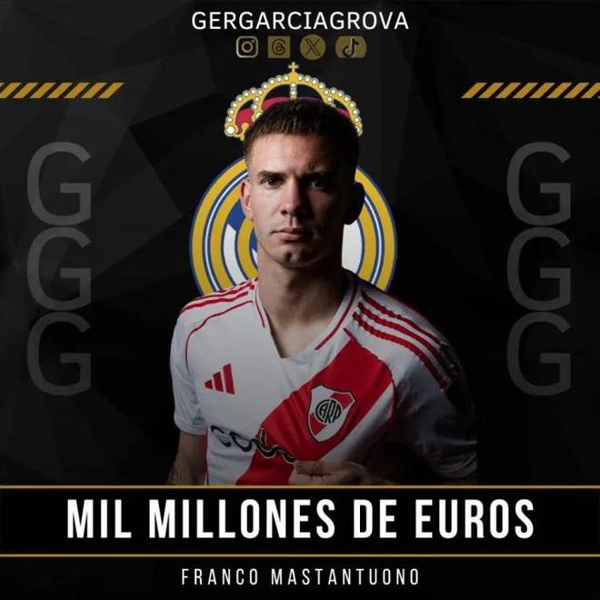 根據(jù)記者Germán García Grova透露:“皇馬為了預(yù)防被挖角,決定將馬斯坦托諾的解約金條款設(shè)定為10億歐元。”