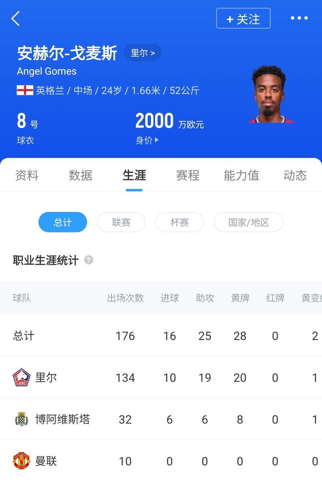 安赫爾-戈麥斯,現(xiàn)年24歲,英格蘭中場,出自曼聯(lián)青訓(xùn),2020年夏窗球員以自由身加盟里爾,今年6月與里爾合同到期,目前德轉(zhuǎn)身價2000萬歐。