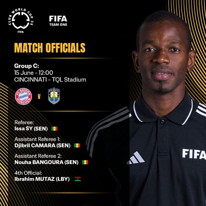 官方:塞內(nèi)加爾籍裁判組將執(zhí)哨世俱杯小組賽拜仁vs奧克蘭城