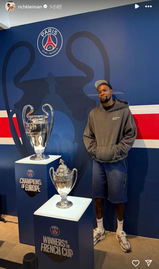 杜蘭特現(xiàn)身洛杉磯和巴特勒合影 還和大巴黎歐冠獎(jiǎng)杯合影