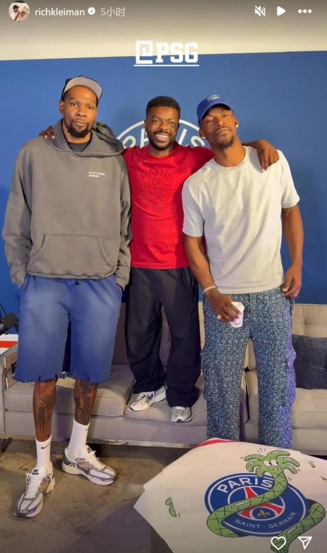 6月15日歐冠日?qǐng)?bào)宣報(bào)訊 今天,杜蘭特的商業(yè)伙伴Rich Kleiman在INS分享了杜蘭特和巴特勒的合影,他們出現(xiàn)在洛杉磯的PSG球場(chǎng)。