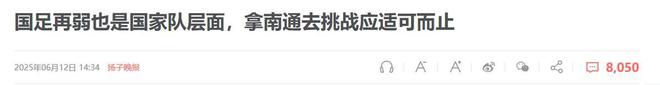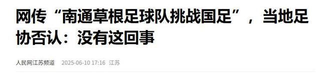 揚(yáng)子晚報(bào)2025年06月12日國足日?qǐng)?bào)宣報(bào) 14:34 ——國足再弱也是國家隊(duì)層面,拿南通去挑戰(zhàn)應(yīng)適可而止