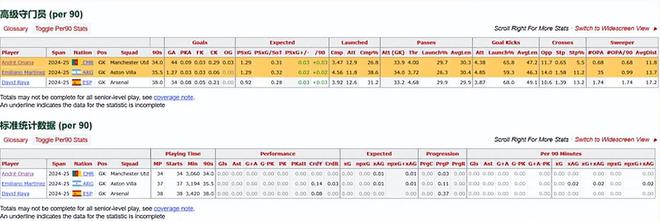切換成90分鐘的平均數(shù)據(jù),奧納納、大馬丁的PSXG其實(shí)都是1.29,奧納納本賽季也做出過不少神撲的,只是被很多失誤給掩蓋了;馬丁內(nèi)斯本賽季也有不少失誤,只是被神撲給掩蓋了,這還是奧納納場(chǎng)均拿到0.03個(gè)烏龍球背景下的數(shù)據(jù)。