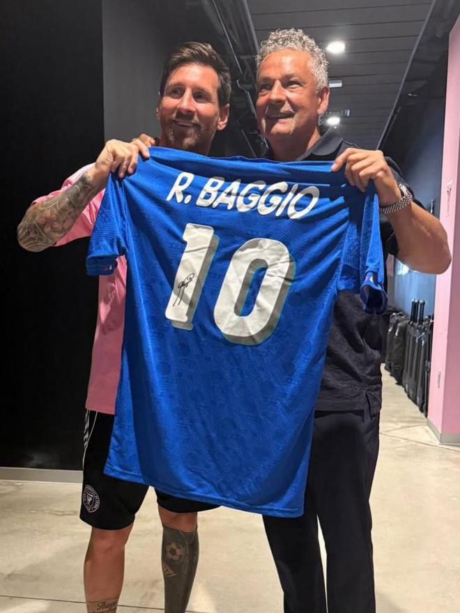 今日巴喬造訪邁阿密與梅西會面,并向梅西贈送自己的意大利10號球衣。梅西更新社交媒體曬出與巴喬合照,并對巴喬的造訪和禮物非常驚喜。