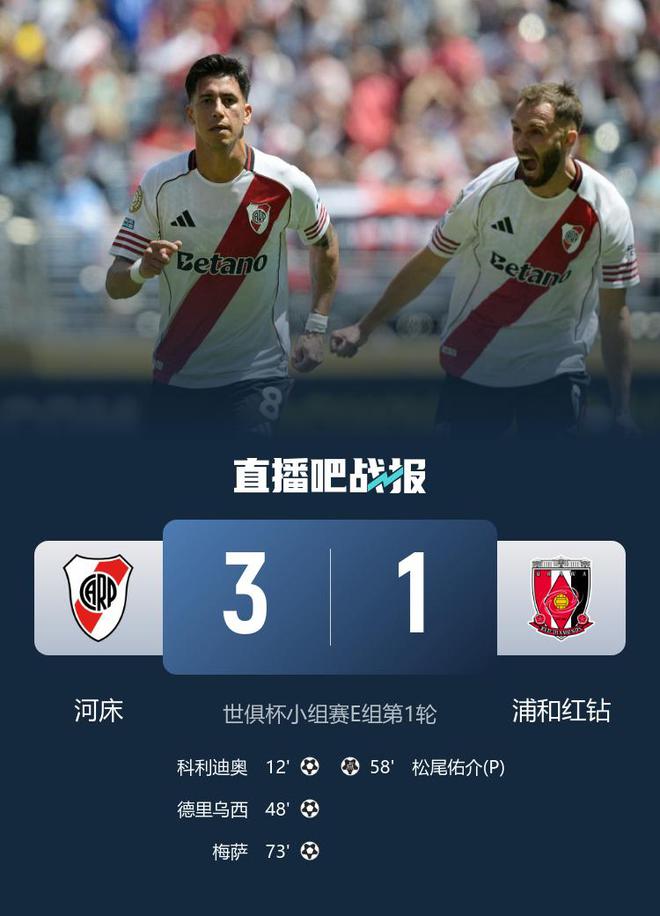 世俱杯小組賽E組第1輪,河床3-1浦和紅鉆,阿庫尼亞2助攻。