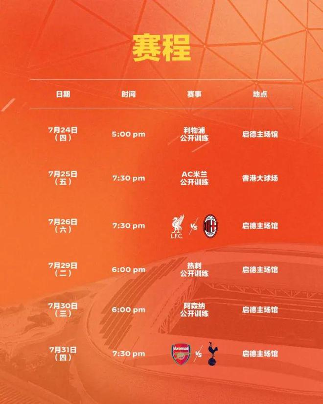 四家參賽俱樂部的公開訓(xùn)練仍有少量門票在 Cityline 平臺選購。利物浦、阿森納和熱刺的三場公開訓(xùn)練將在啟德主場館舉行,票價為港幣99元至299元(約合人民幣91元至275元);AC米蘭的公開訓(xùn)練定在香港大球場進(jìn)行,票價統(tǒng)一為港幣199元(約合人民幣183元)。每筆交易均需支付行政手續(xù)費(fèi)。