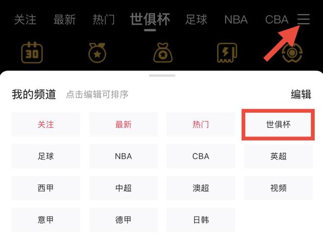 世俱杯頻道現已上線,點擊頻道欄右側【更多】按鈕展開,直達世俱杯頻道(Tips:可以點擊編輯根據您的喜好拖動排序),閱讀更多世俱杯專屬資訊,便捷查看世俱杯賽程、積分、球員榜及更多世俱杯專屬活動>>>