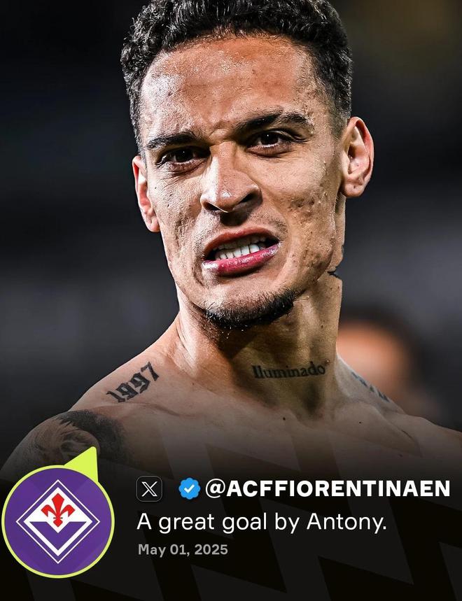 大度!安東尼打入世界波,佛羅倫薩官方發(fā)出衷心贊嘆