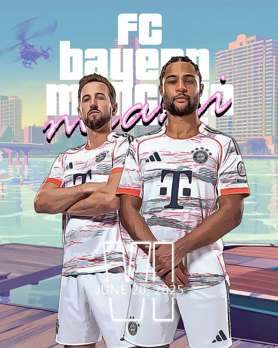拜仁發(fā)布GTA6風(fēng)格的世俱杯海報(bào),凱恩和格納布里亮相