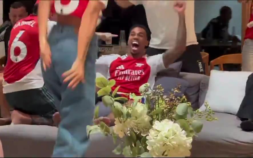 馬丁內(nèi)利進(jìn)球后,加布里埃爾在家中高舉雙臂激情慶祝