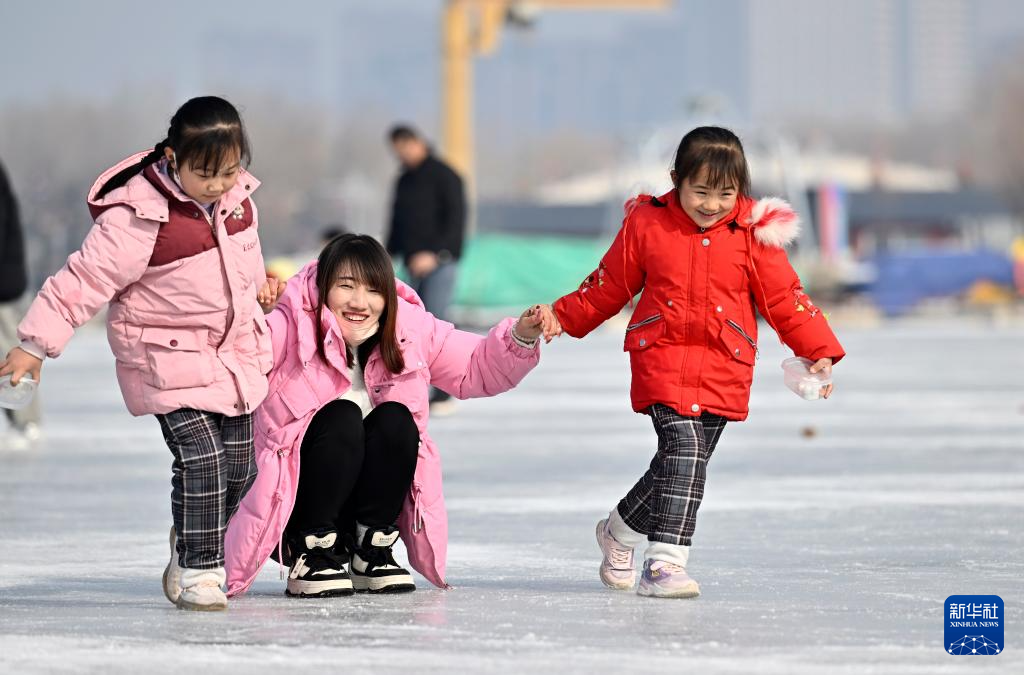 1月30日,市民在寧夏銀川市北塔湖冰面滑冰。