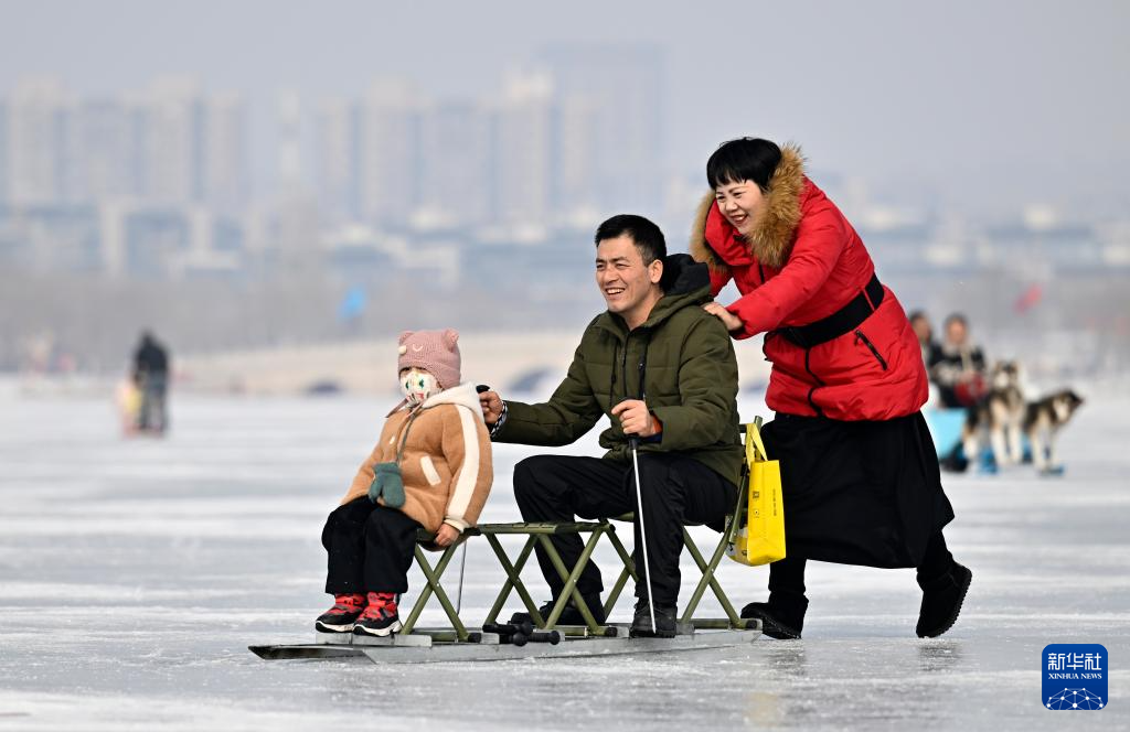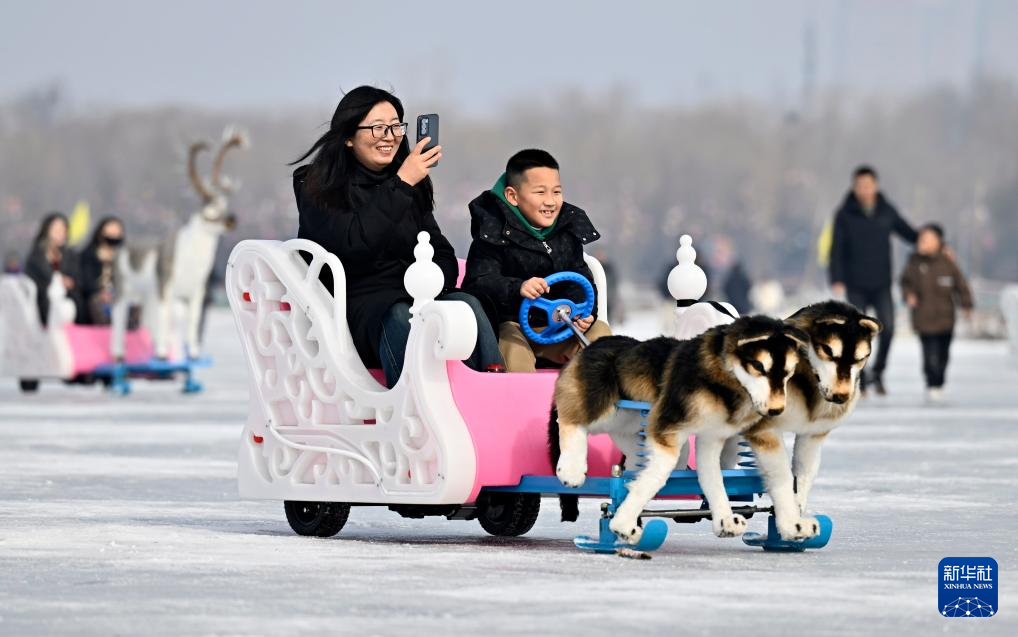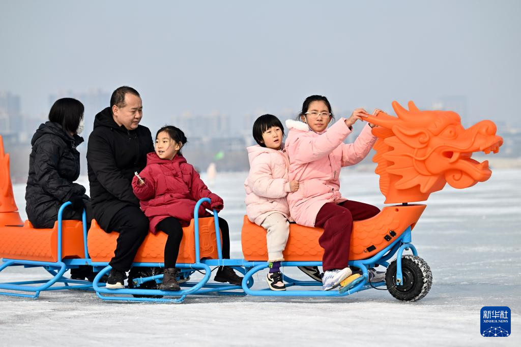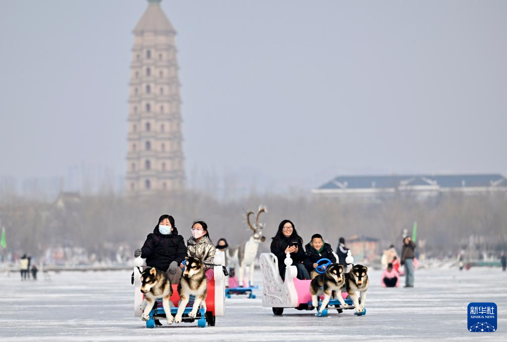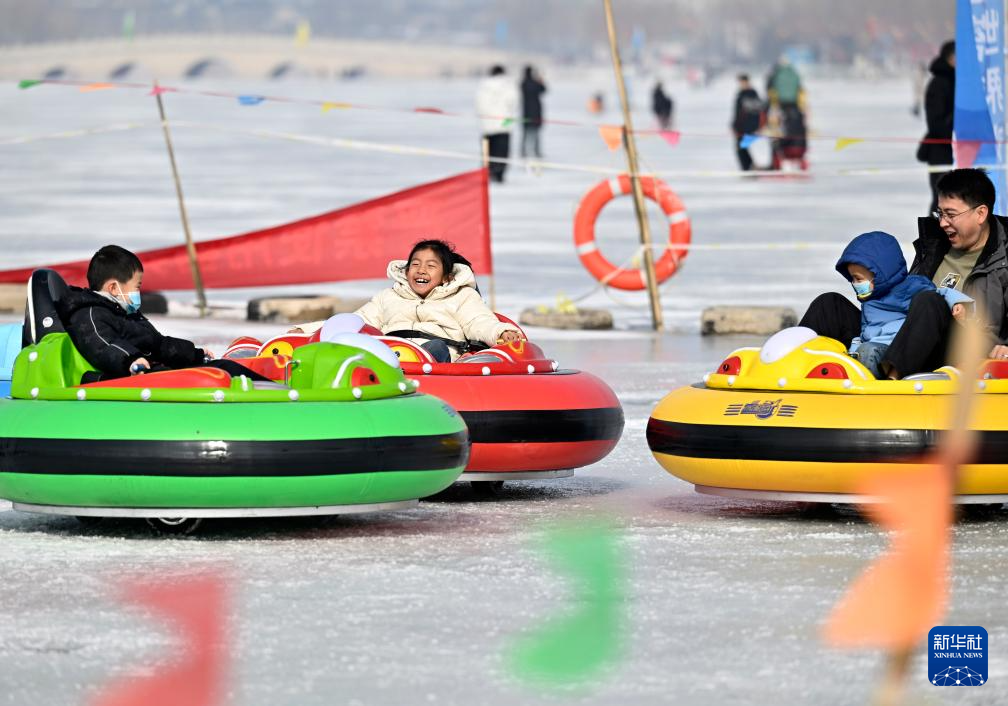 當日是農(nóng)歷大年初二,眾多市民來到寧夏銀川市北塔湖體驗冰上運動,歡度春節(jié)。