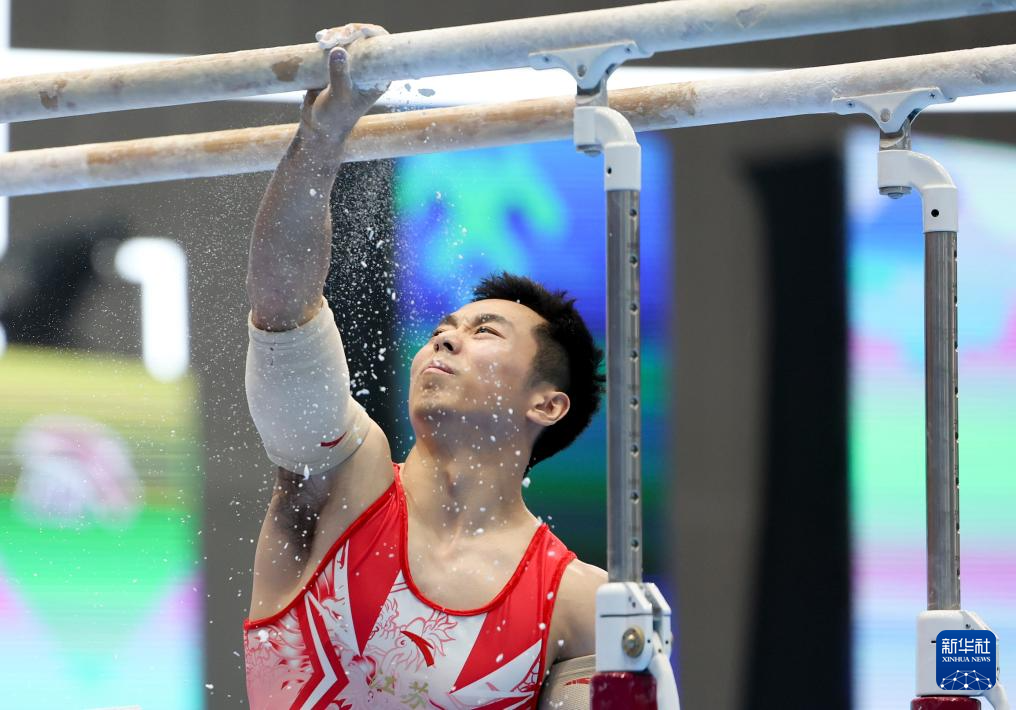 5月19日,尤浩在雙杠比賽前準(zhǔn)備。