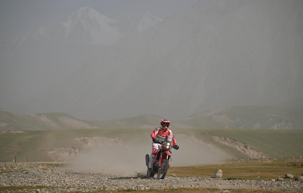 5月26日,紅駝機車廠隊一隊車手方響量在比賽中。當日,2025中國環(huán)塔國際拉力賽進入第五賽段。體育日報記者 辛悅衛(wèi) 攝