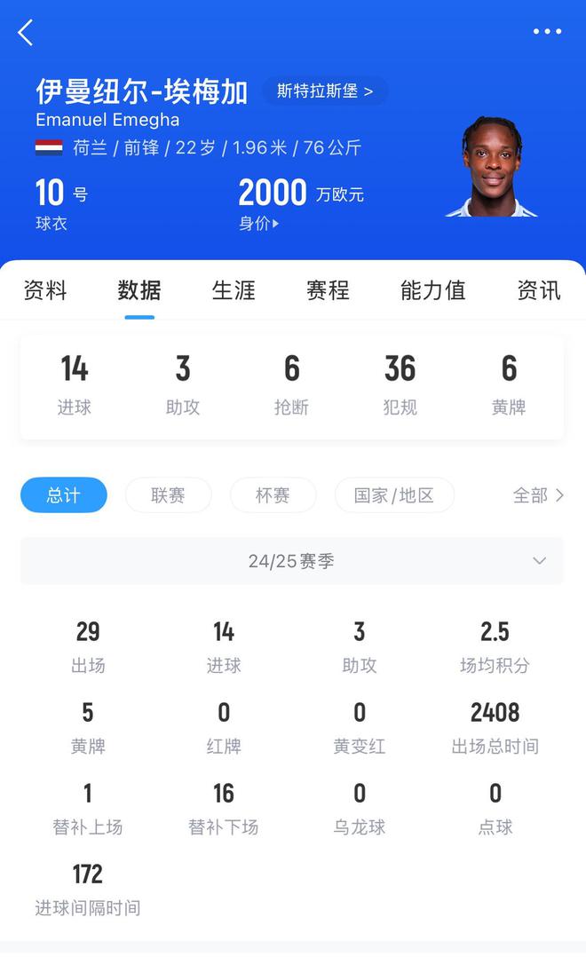 1米96大中鋒!法媒:切爾西密切關注22歲埃梅加,球員身價2000萬