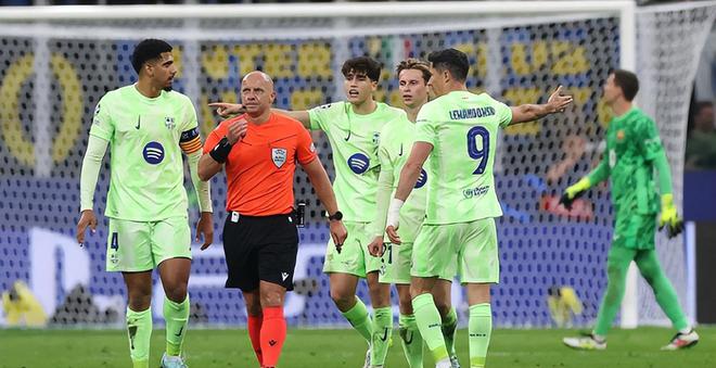 隨后的比賽中,國米繼續(xù)保持著場上的優(yōu)勢(shì),不斷通過中場的傳遞和邊路飛翼的突破尋找進(jìn)攻機(jī)會(huì)。第42分鐘,勞塔羅再次展現(xiàn)出其超強(qiáng)的個(gè)人能力。他在接到隊(duì)友傳球后,帶球突入禁區(qū),巴薩球員庫巴西在防守過程中不慎將其鏟倒。主裁判在第一時(shí)間并未做出判罰,但在VAR的介入提醒下,主裁判親自觀看大屏幕回放后,果斷判罰點(diǎn)球。