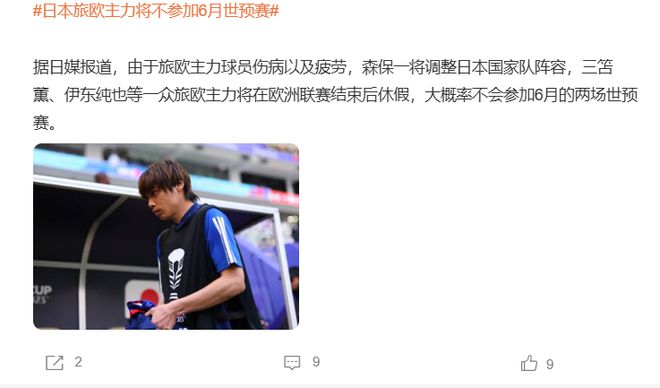 根據(jù)日本媒體的報道,由于留洋歐洲的部分日本國腳,出現(xiàn)傷病及疲勞情況,森保一決定不再強制他們參加最后2輪世預賽。比如效力布萊頓的三笘薫、伊東純也等等主力。換言之,日本隊最后2輪比賽的戰(zhàn)意,已經(jīng)不是很強烈。