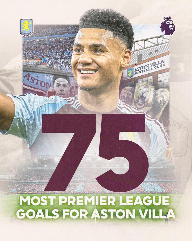 英超第36輪,維拉客場對陣伯恩茅斯,沃特金斯在上半場打入一球,以75球獨享維拉隊史英超射手王。