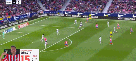 第11分鐘,皇社解圍失誤,瑟洛特爆射開場11分鐘戴帽,馬競3-0
