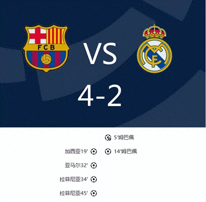 西甲聯(lián)賽最新戰(zhàn)報(bào),半場(chǎng)比賽皇馬2-4巴薩,姆巴佩兩球成背景