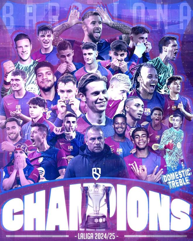本賽季,巴薩包攬西班牙國內三冠——西甲、國王杯和西超杯。在國王杯和西超杯決賽中,他們都戰(zhàn)勝了死敵皇馬,聯(lián)賽也是力壓皇馬奪冠。